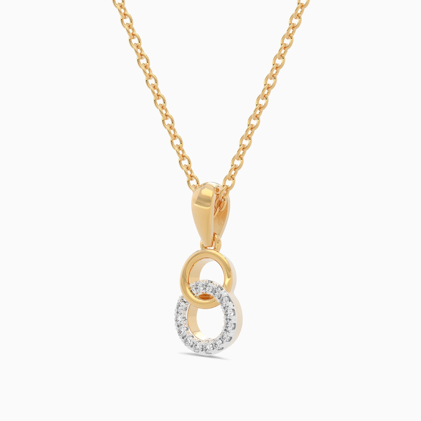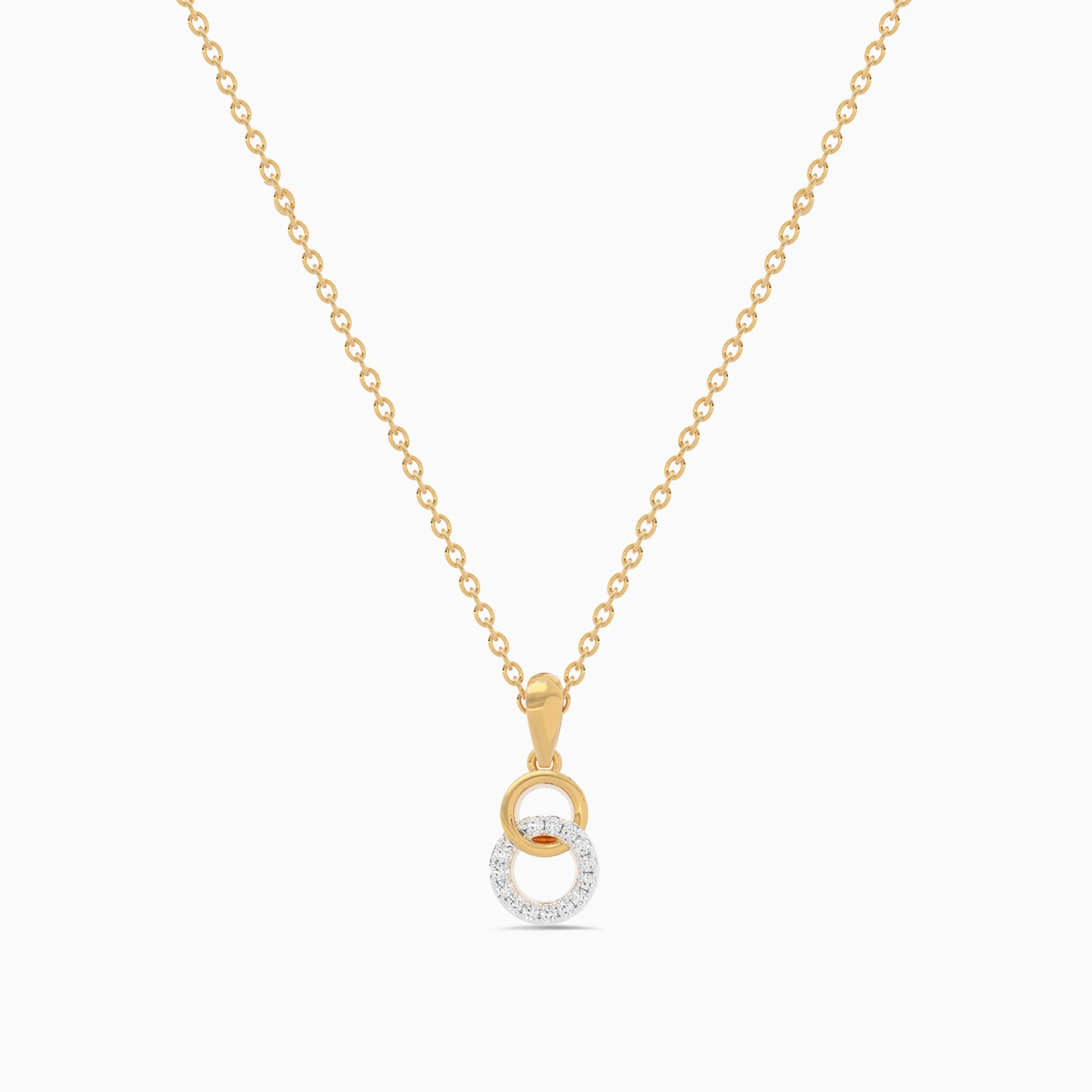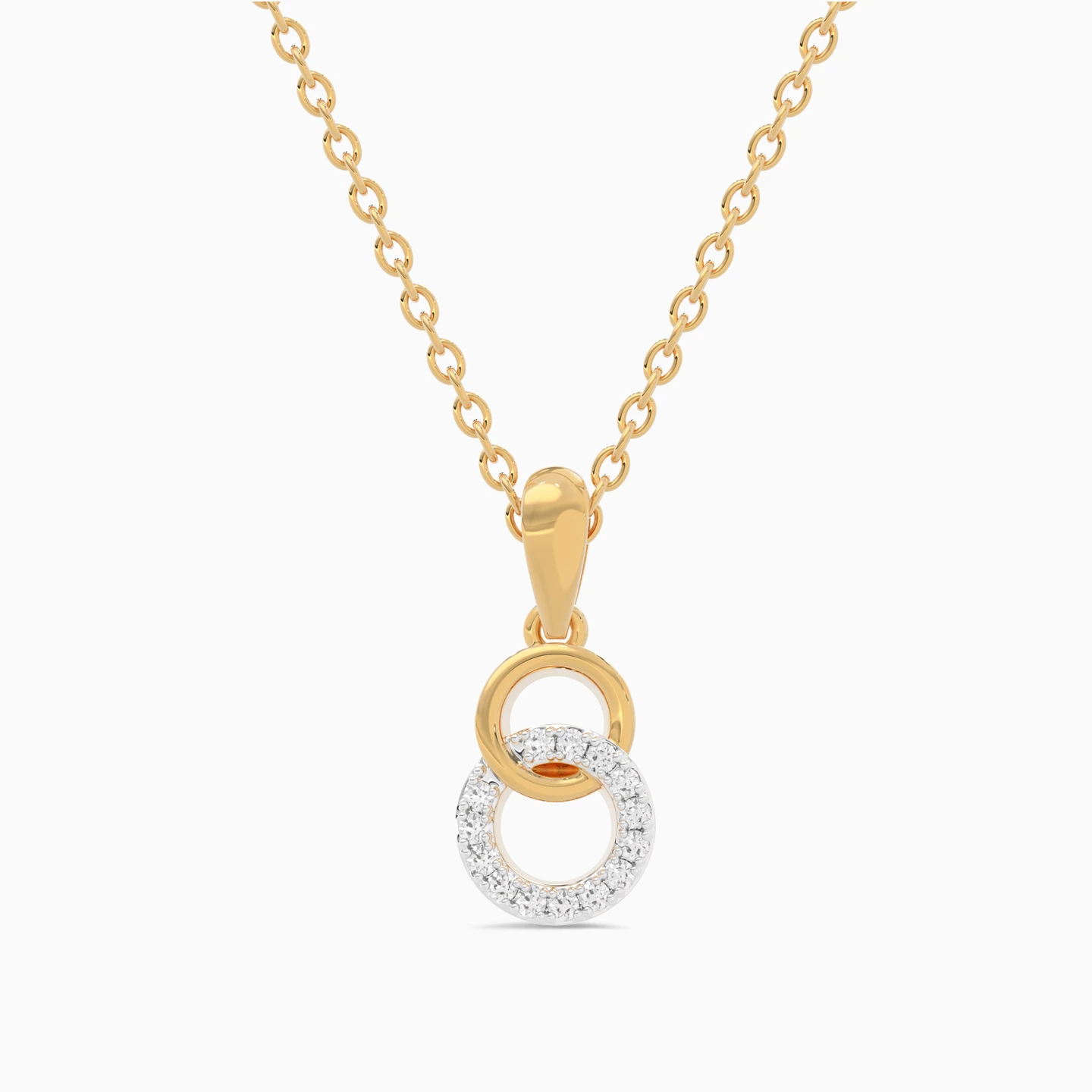 Elevate your look to luxury with this shiny piece from Lazurde Diamonds! This elegant 18K yellow gold necklace features a stunning pendant crafted with two interconnected circles, one larger than the other, with the larger circle beautifully framed with radiant diamonds. The harmonious design symbolizes unity and balance, while the sparkling diamond adds a touch of timeless brilliance, making it a perfect choice for any occasion.