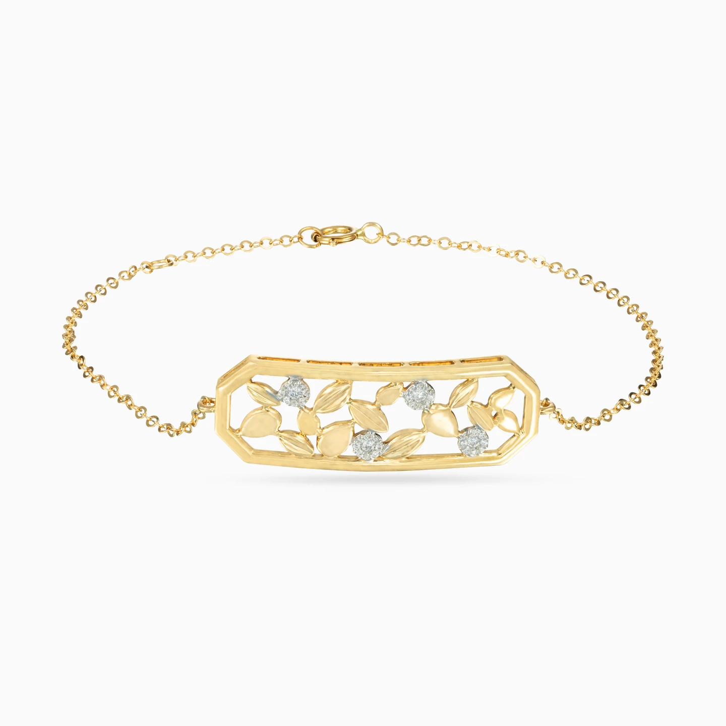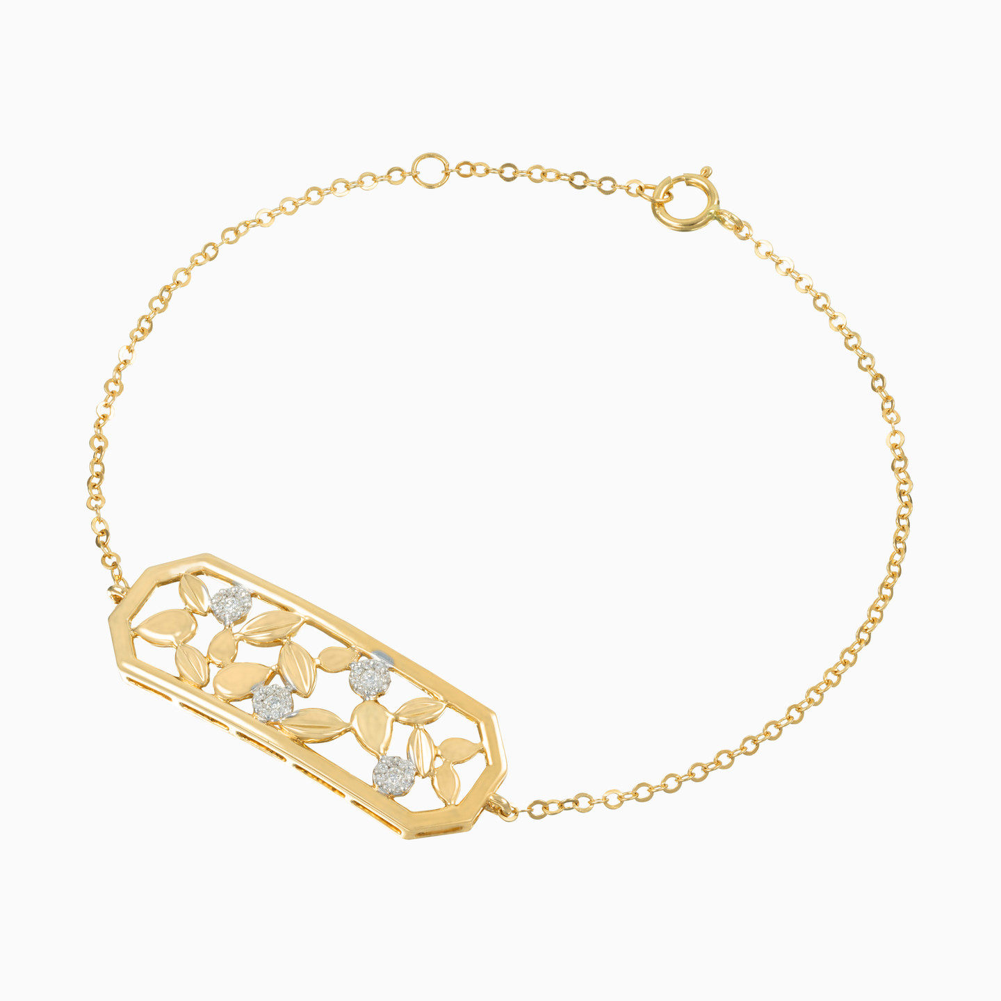 Stand out from the crowd by wearing this mesmerizing gold and diamond bracelet from L'azurde Diamonds. We love the marquise and pear-shaped gold leaves and round brilliant cut diamond clusters that dance within a chic 18-karat yellow gold frame at the center of this chain bracelet. Pair this eye-catching piece with the matching pendant necklace and ring to add sparkle to your daytime and evening looks.