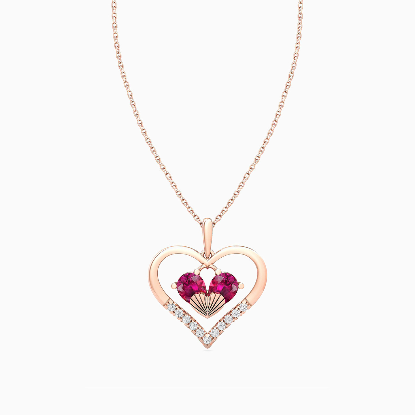 Heart Diamond & Red Stone Necklace in 18K Gold