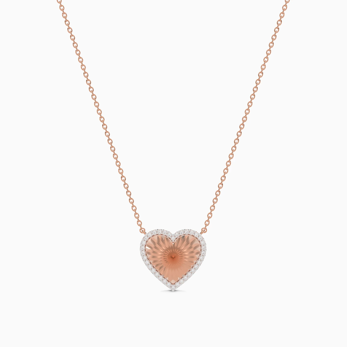 Introducing the epitome of romance from Lazurde Diamonds, the heart-shaped pendant from our Valentine's Collection is the perfect token of love. Crafted in exquisite 18k rose gold, this necklace features a delicate heart pendant, elegantly framed by small round diamond stones that catch the light with every movement. This piece is focusing purely on the brilliance of diamonds and the warm glow of rose gold, making it a timeless choice for someone special.