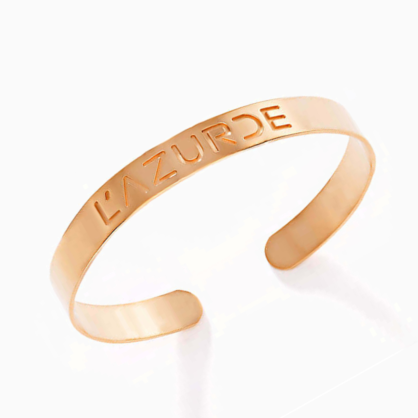 Nothing spells out iconic more than this piece from L'azurde Gold. Cast in 18-karat rose gold, this cuff accessory is embossed with the brand name and will sit prominently on your wrist whether you choose to wear it all day or all evening. We suggest combining this with a matching ring for maximum effect.