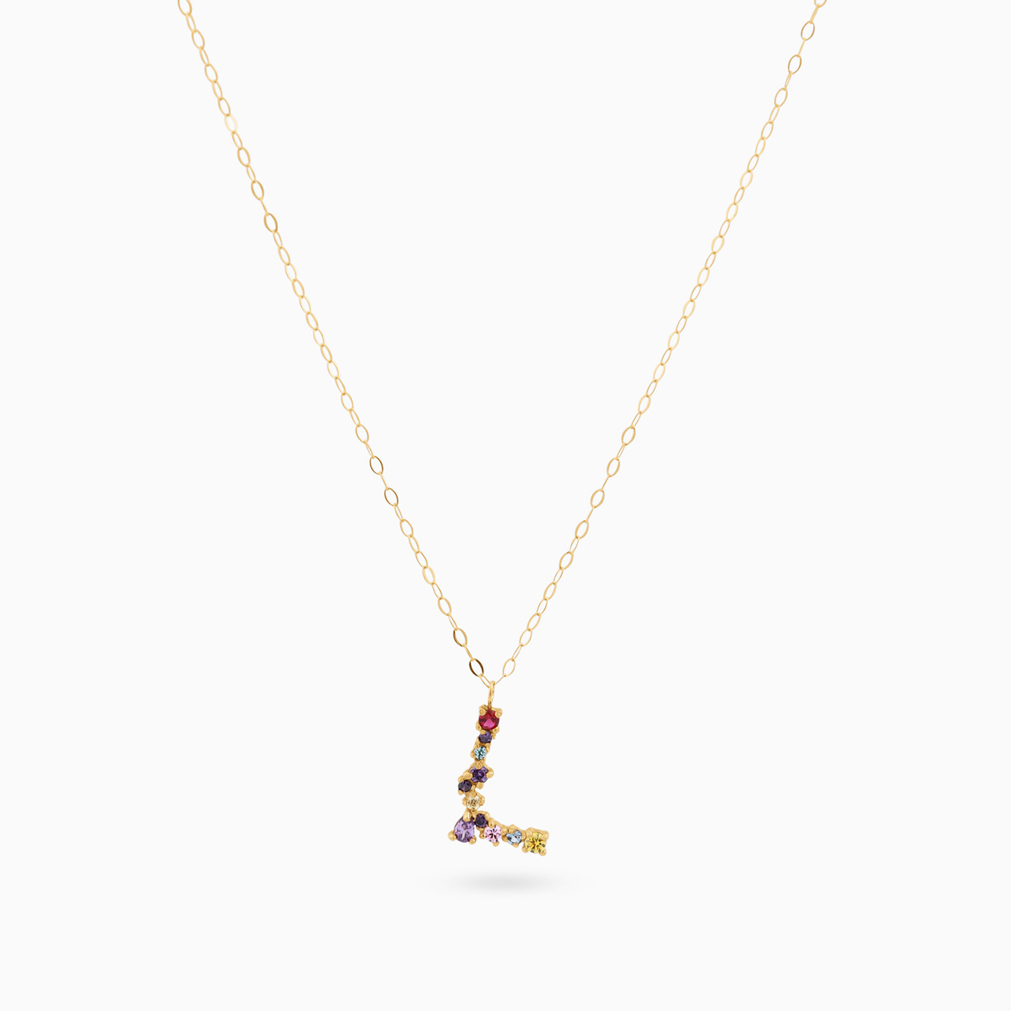 Style gets personal when you add an initial pendant from L’azurde Gold to your look. This striking pendant features eye-catching colored stones in a mix of shapes and sizes, forming the letter L. Cast in 18-karat yellow gold, this lovely initial pendant is the perfect finishing touch for casual or elegant attire to showcase your individuality.