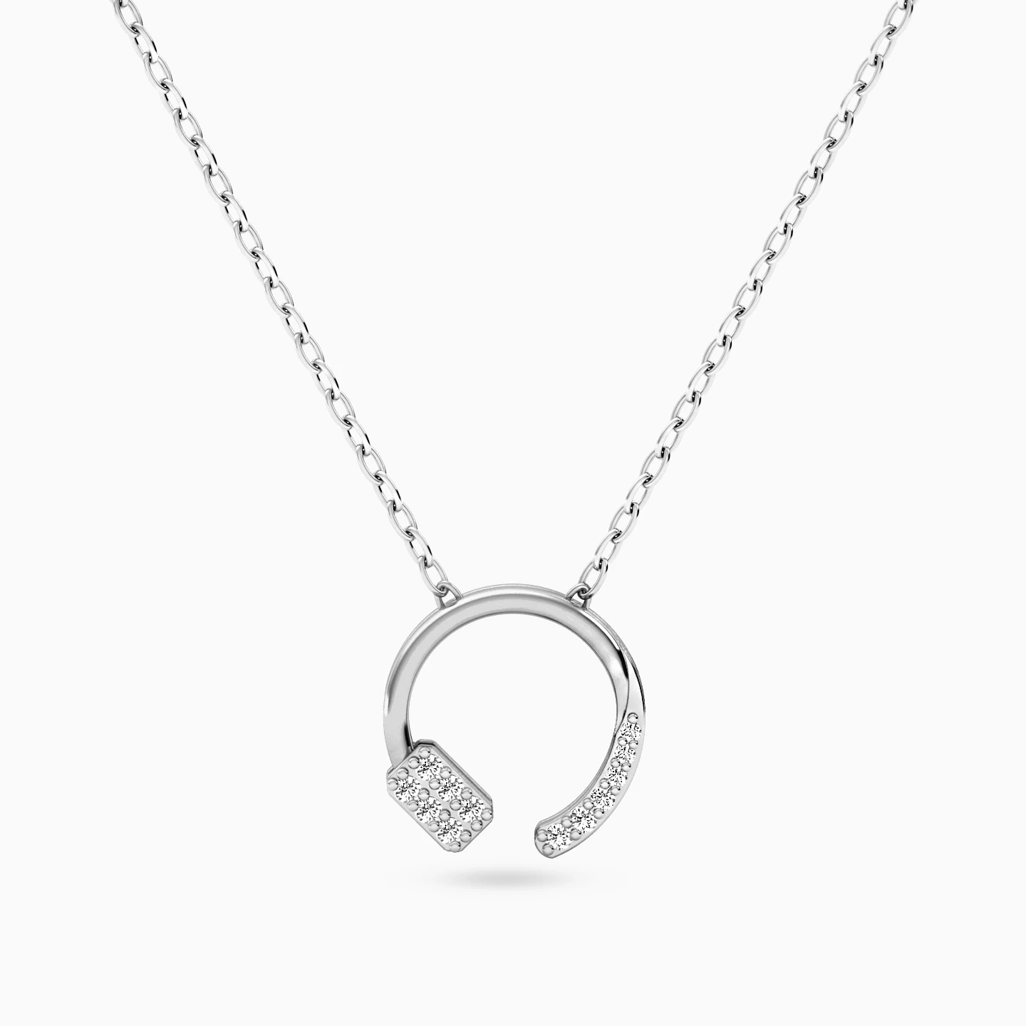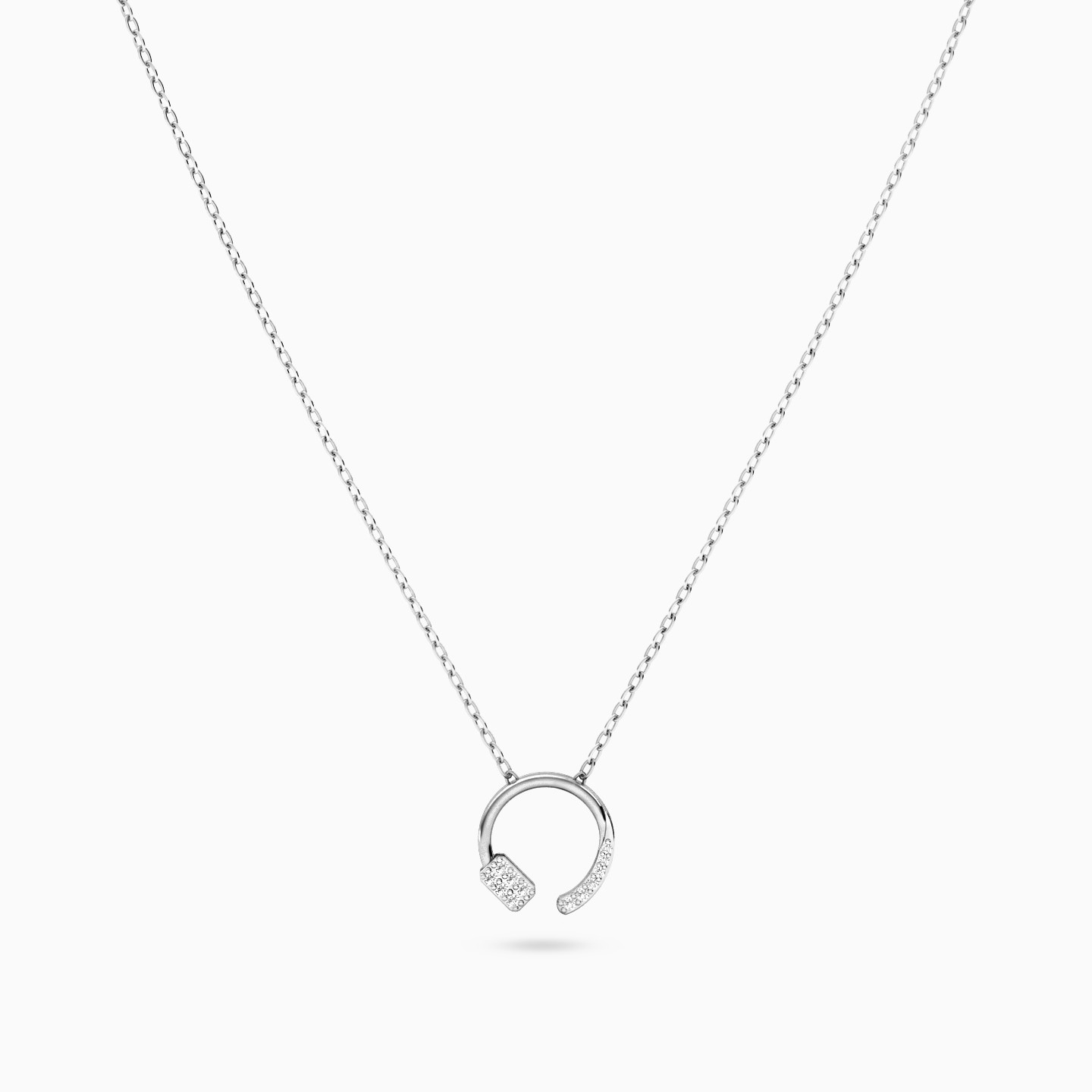 Timeless sparkle, infinite meaning. This Miss L’ necklace features an open circle in white gold, delicately set with dazzling diamonds. A refined symbol of wholeness, openness, and elegance, it shines with quiet confidence. Whether worn as a graceful daily piece or gifted to someone special, it captures beauty that never fades.