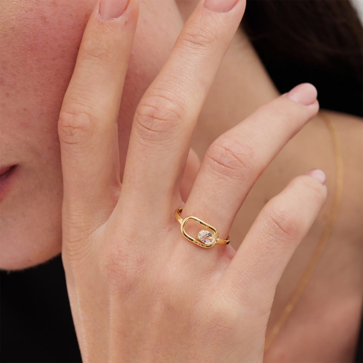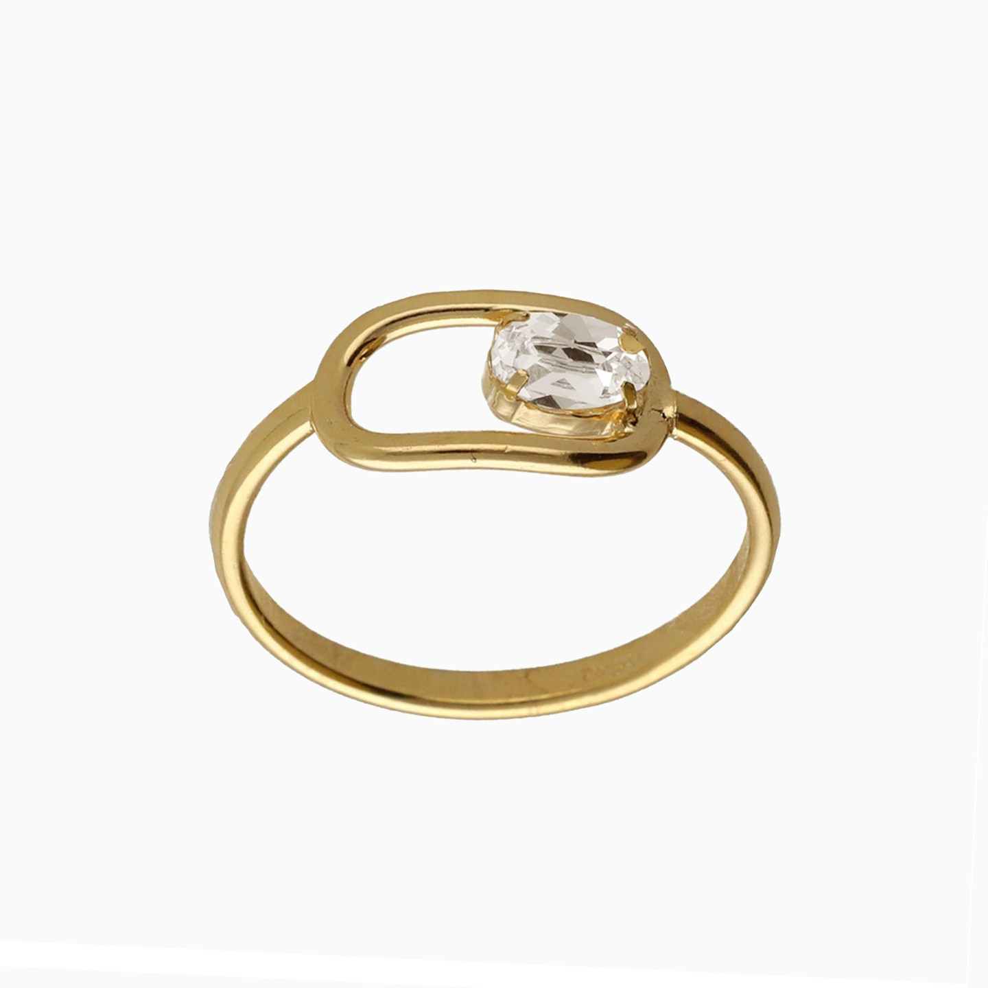 Open Oval Frame Cubic Zirconia Gold Plated Ring
