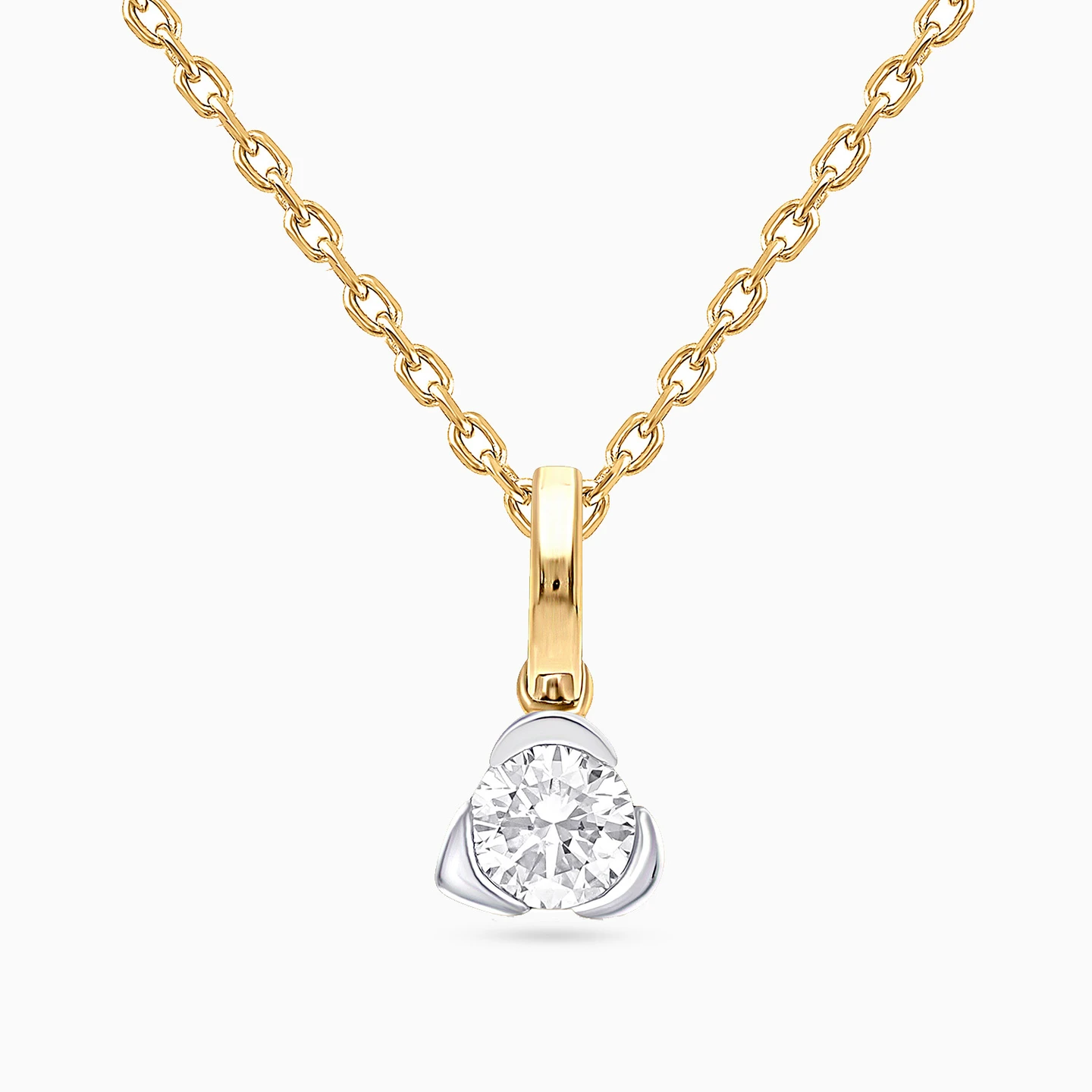 A touch of timeless radiance. This Waves necklace in yellow gold plating holds a round lab grown diamond within a modern open triangle design, blending elegance and strength in one refined piece. An effortless choice for celebrating life’s most meaningful moments.