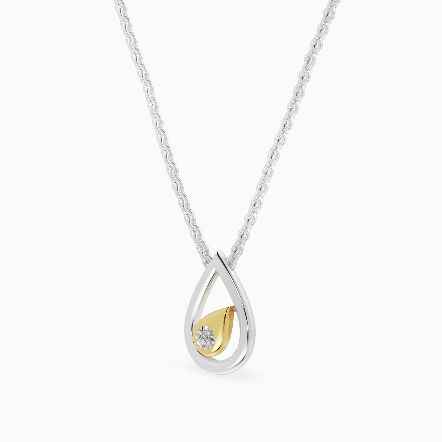Discover affordable glamour and timeless style with this piece from Waves! This sterling silver necklace shines with a modern pear-shaped pendant, where a delicate drop of warm golden tones cradles a brilliant lab-grown diamond at its center, adding a graceful sparkle. Perfect for those who adore feminine elegance and subtle luxury, it’s the perfect touch to enhance any look, day or night.