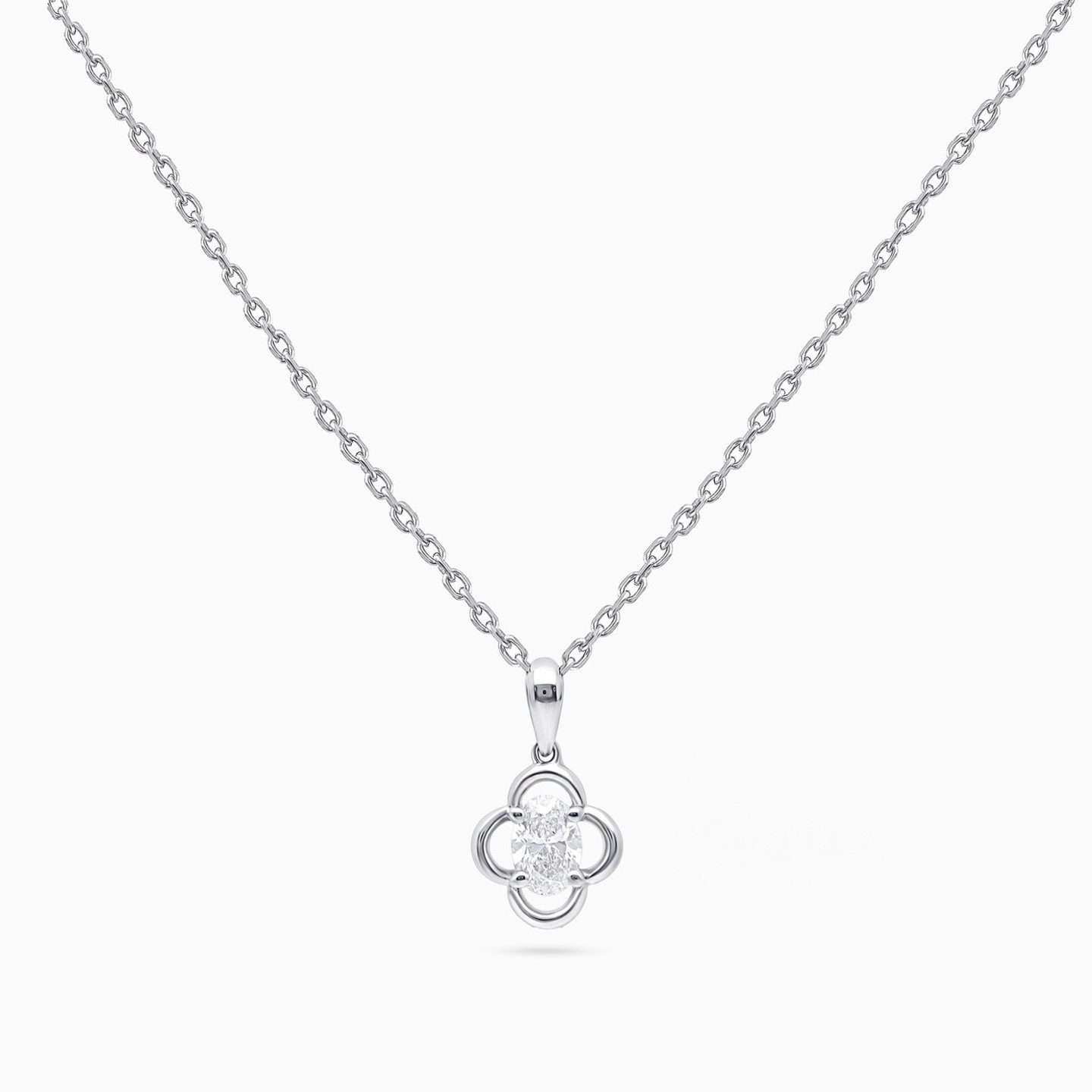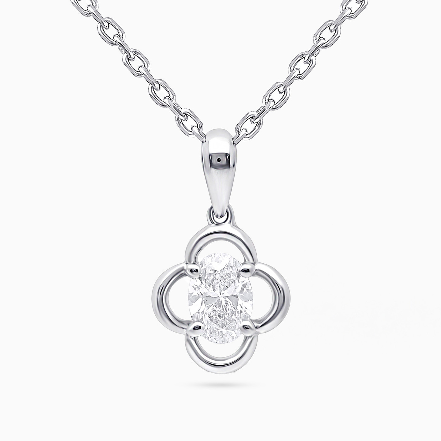 A charm of harmony. This Waves necklace in sterling silver features an oval lab grown diamond framed by a graceful quatrefoil design, symbolizing balance and beauty. A refined gift for someone whose elegance feels effortless.