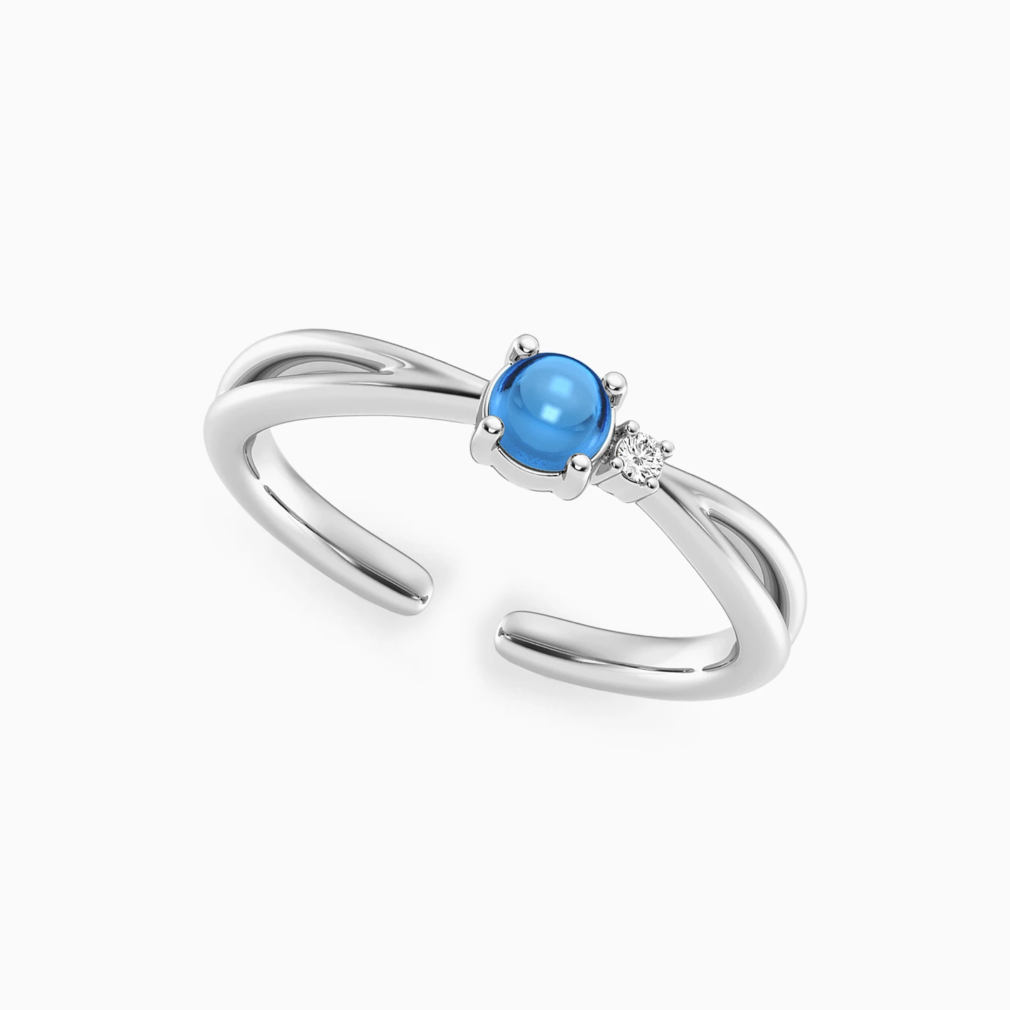 Discover affordable glamour and timeless style with this piece from Waves! This sterling silver ring dazzles with a modern split shank design, centering on a captivating round blue stone that evokes serene ocean hues, complemented by a sparkling lab-grown diamond for added brilliance. Perfect for those who adore refined elegance with a touch of vibrant color.