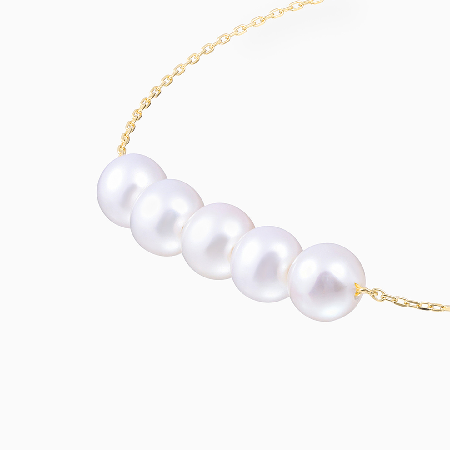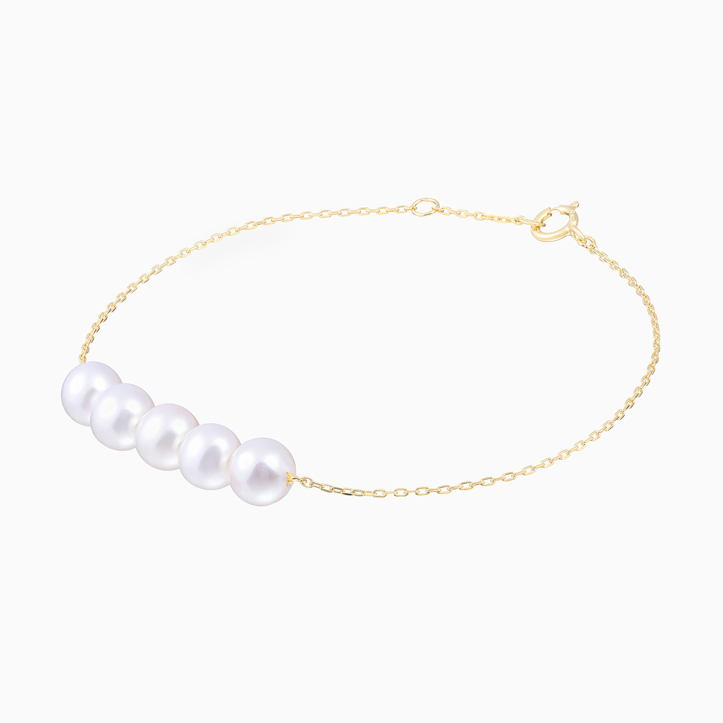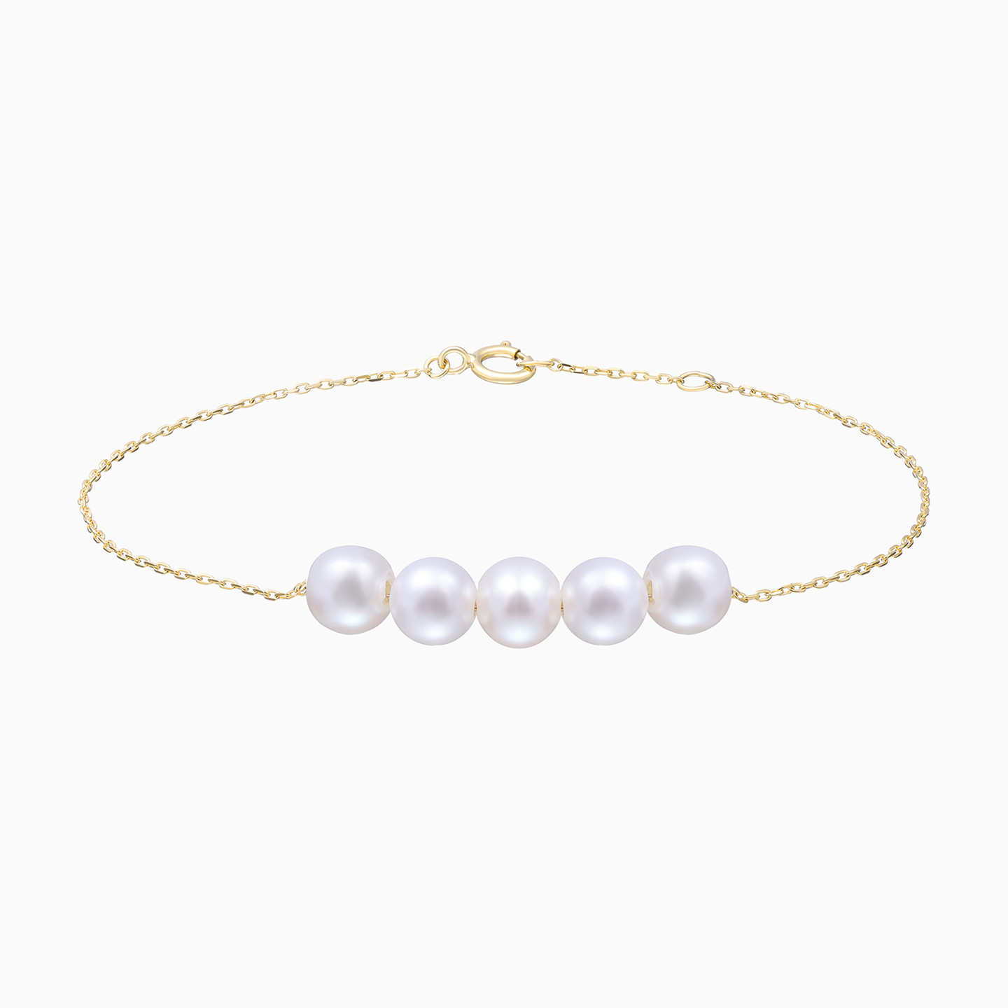 For a look that exudes timeless femininity, slip this sophisticated pearl chain bracelet from L'azurde Gold on your wrist. Five timeless pearls sit at the center of this elegant 18-karat yellow gold chain bracelet, poised to capture admiring glances. We love this bracelet as an everyday accessory to dress up casual wear and add a touch of glamour to daytime or evening outfits.