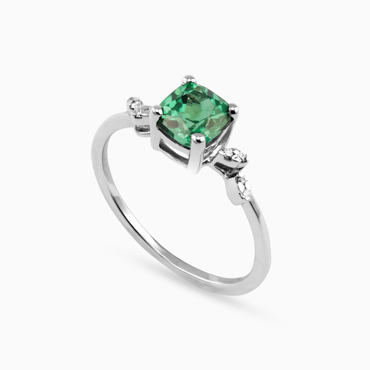 A classic accessory to have in your jewelry collection, this gorgeous colored stone and diamond ring from L'azurde Diamonds makes any outfit come to life. Beautifully crafted in shimmering 18-karat white gold, this magnificent ring showcases a square-shaped stone at the center in a stunning shade of green. Radiant with 0.04-carat brilliant cut diamond accents, this elegant piece elevates any outfit.