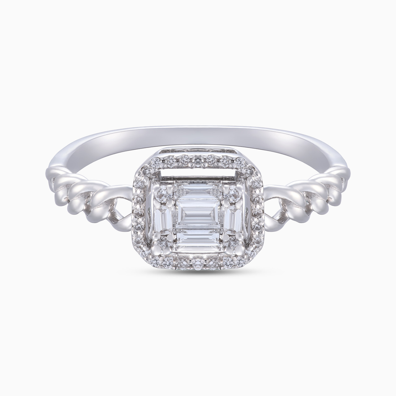 Step out in style and flaunt your femininity with this stunning 18-karat white gold ring from L’azurde Diamonds gracing your hand. A baguette cut 0.19-carat diamond centerpiece gives this gorgeous ring its allure. The diamond dazzle and exquisite chain link shank are sure to make this ring your go-to piece when you want to impress at your next business meeting or office party.