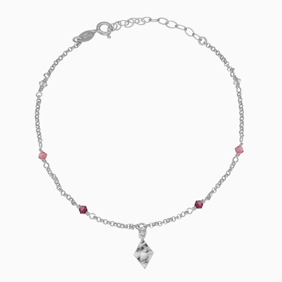Let your ankles shimmer and shine with this anklet from Waves. Adorned with colored stones in hues of pink, and a diamond accent to the center, this sterling silver number adds a touch of whimsy to your stride. The stones glint with every movement, making it a delightful choice for any occasion where you want to express your unique style.