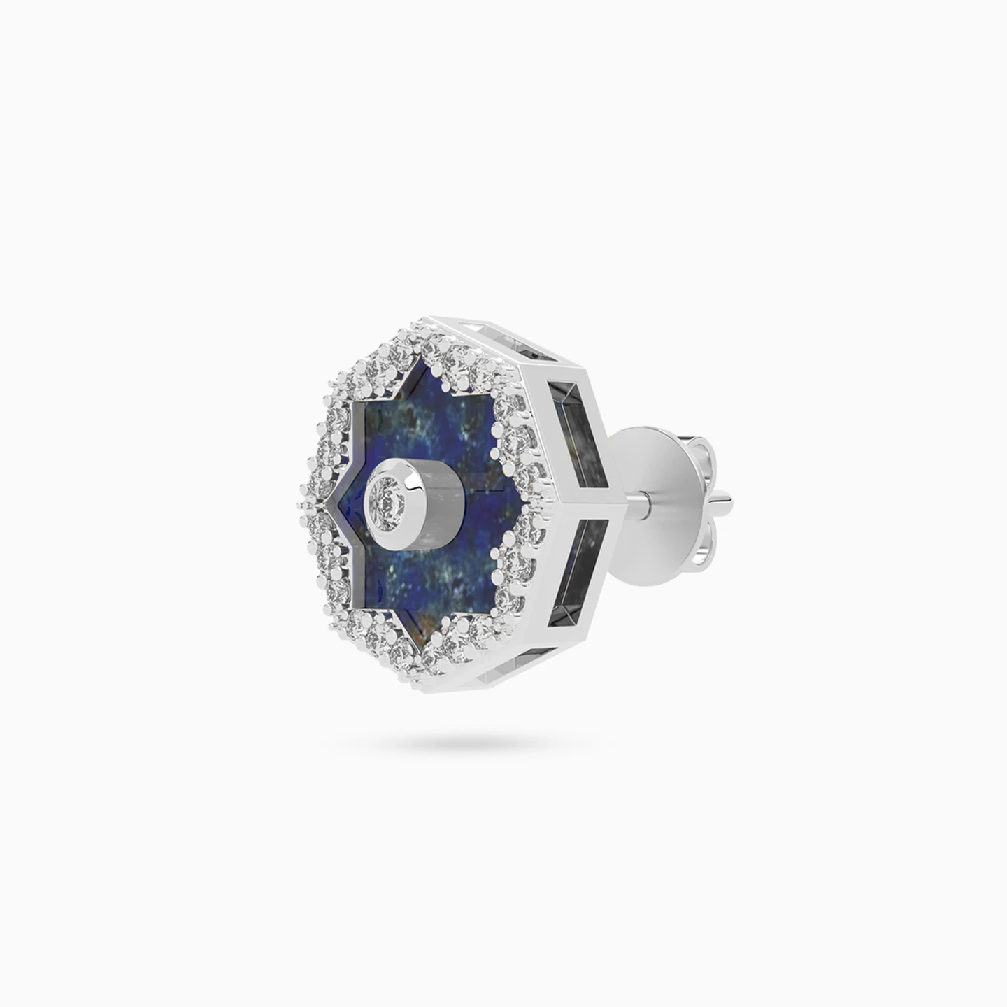 Elevate your look to luxury with this shiny piece from Lazurde Diamonds! These elegant 18K white gold earrings feature a captivating round design adorned with a deep blue stone star-like shaped, centered with a dazzling diamond. The minimal yet celestial-inspired design adds a touch of magic and brilliance, making it a timeless piece that complements any style. Whether worn alone or layered, this piece is a symbol of elegance and sophistication, perfect for adding a stellar sparkle to your collection.
