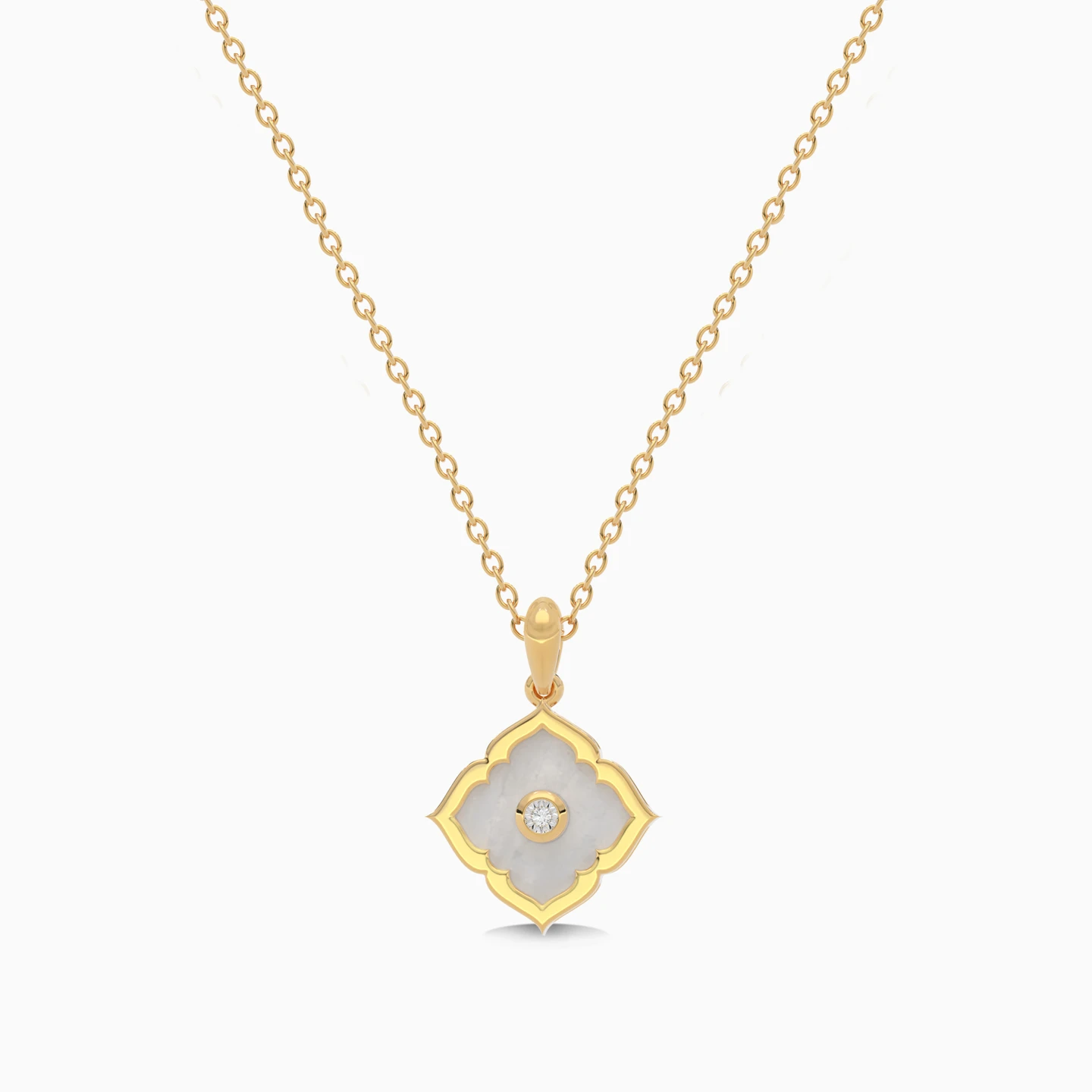 Star White Stone & Diamond Necklace In 18K Gold