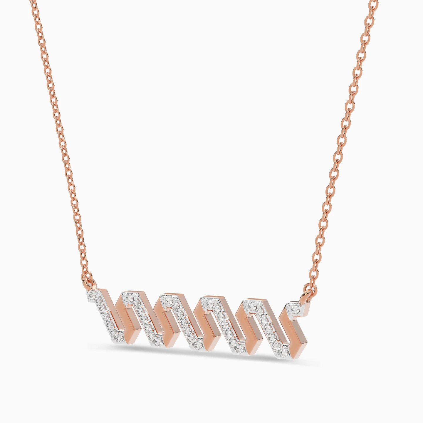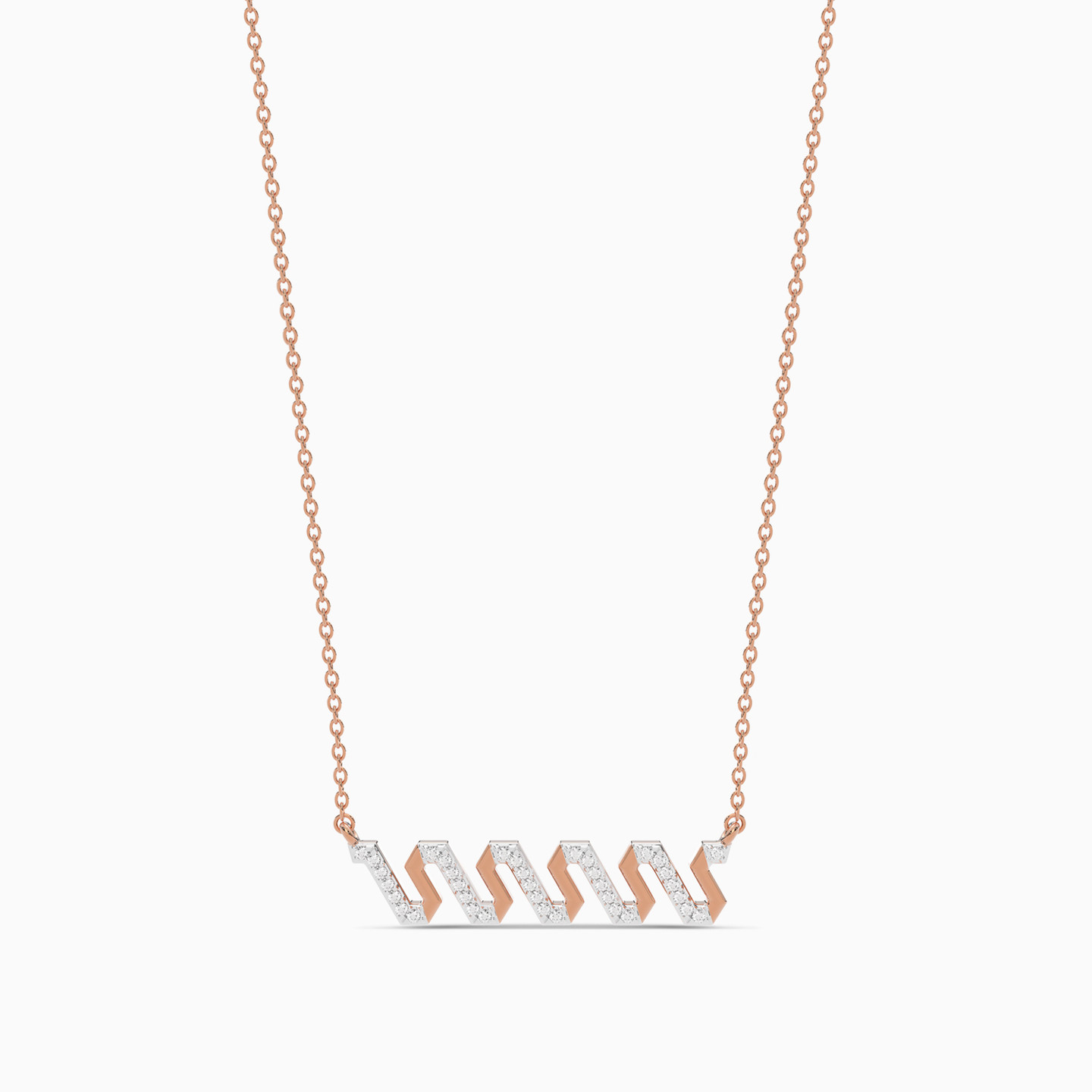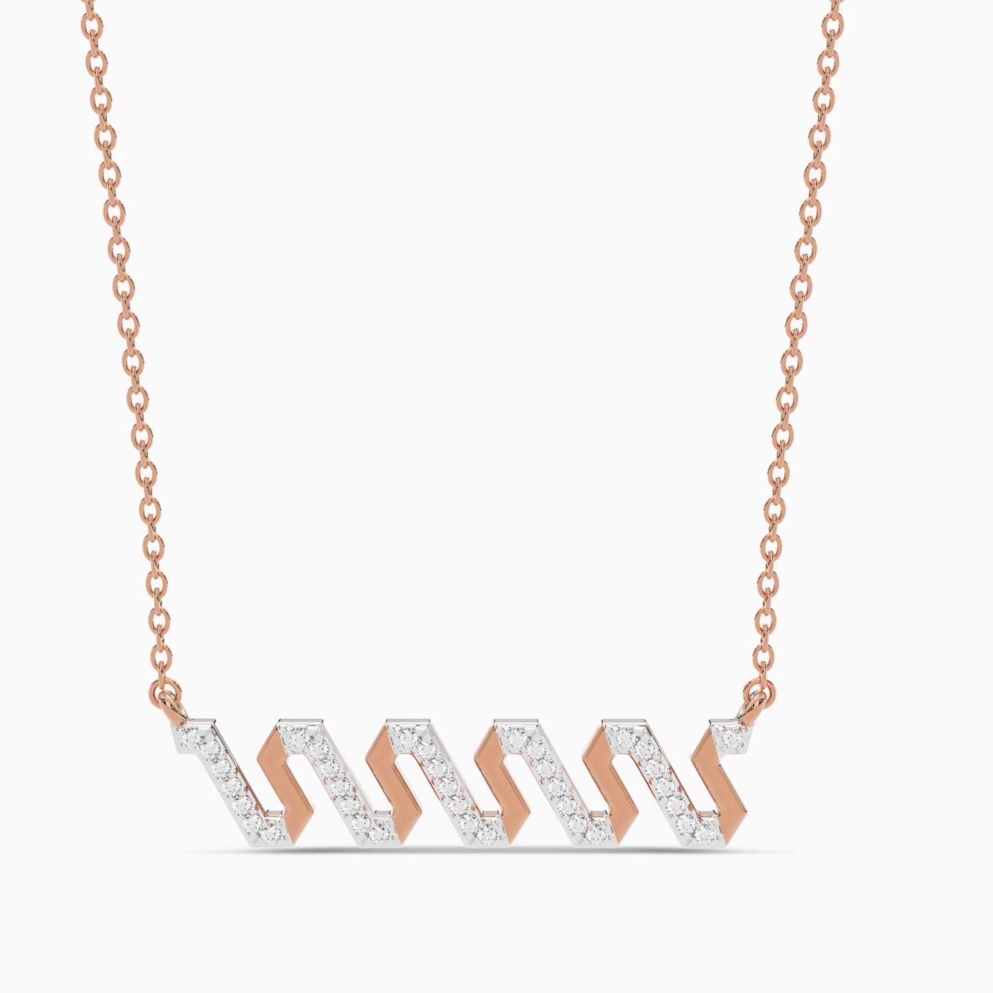Elevate your look to luxury with this shiny piece from Lazurde Diamonds! This exquisite 18K rose gold statement necklace features a captivating zig-zag design, delicately accented with touches of sparkling diamonds. The bold yet elegant pattern reflects modern sophistication with a hint of timeless charm, making it the perfect accessory to add a touch of luxury and individuality to both everyday looks and special occasions.