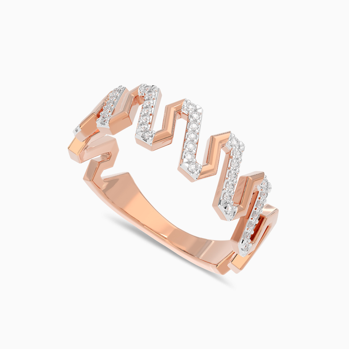 Elevate your look to luxury with this shiny piece from Lazurde Diamonds! This exquisite 18K rose gold statement ring features a captivating zig-zag design, delicately accented with touches of sparkling diamonds. The bold yet elegant pattern reflects modern sophistication with a hint of timeless charm, making it the perfect accessory to add a touch of luxury and individuality to both everyday looks and special occasions.